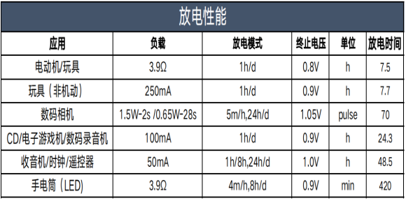 3.9Ω放電時(shí)間:3.9Ω負(fù)載連續(xù)放電,截止電壓0.8V模式下的放電時(shí)間平均值。